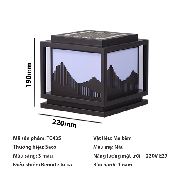 Đèn trụ cổng vuông năng lượng mặt trời TC43XS